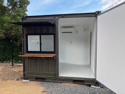 店舗用12Fコンテナです 2026/01/19 新品12フィートコンテナを店舗コンテナに改造しました! 片開きドア 1か所/引き違い窓 小 1か所/換気扇/カウンター/アルフィン庇 最近、とても問い合わせが多い庇です!! 確かに便利ですね♪ 内装は、壁と天井は断熱仕様。エアコン/蛍光灯/配電盤/電気配線 壁紙と床はシート張りです☆彡 外寸 長さ:3,658mm 幅:2,438mm 高さ:2,591mm 店舗でも十分な広さですよ。 ぜひ、ボックスへご相談ください♪
