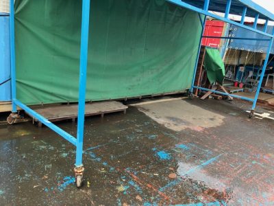 雨にぬれず、太陽も遮って作業が出来ます。しかも移動式なので他のコンテナでも使えます💪